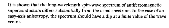 It is shown that the long-wavelength spin-wave spectrum of antiferromagnetic superconductors differs substantially from the usual spectrum. In the case of an easy-axis anisotropy, the spectrum should have a dip at a finite value of the wave vector.