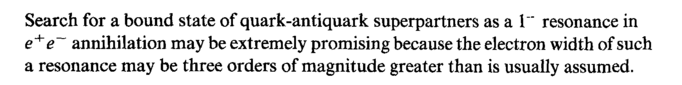 Search for a bound state of quark-antiquark superpartners as а Г" resonance in e+e~ annihilation may be extremely promising because the electron width of such a resonance may be three orders of magnitude greater than is usually assumed.