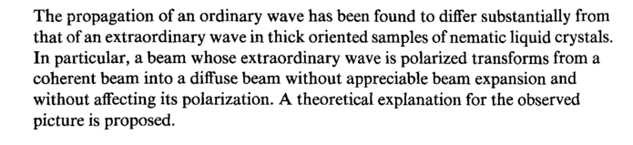The propagation of an ordinary wave has been found to differ substantially from that of an extraordinary wave in thick oriented samples of nematic liquid crystals. In particular, a beam whose extraordinary wave is polarized transforms from a coherent beam into a diffuse beam without appreciable beam expansion and without affecting its polarization. A theoretical explanation for the observed picture is proposed.