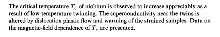 The critical temperature Tc of niobium is observed to increase appreciably as a result of low-temperature twinning. The superconductivity near the twins is altered by dislocation plastic flow and warming of the strained samples. Data on the magnetic-field dependence of Tc are presented.