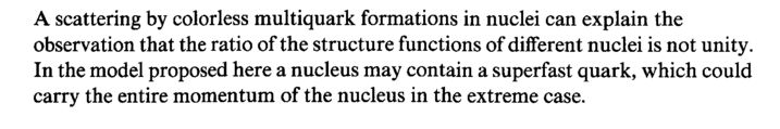 A scattering by colorless multiquark formations in nuclei can explain the observation that the ratio of the structure functions of different nuclei is not unity. In the model proposed here a nucleus may contain a superfast quark, which could carry the entire momentum of the nucleus in the extreme case.