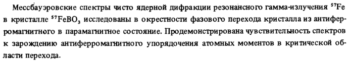 Мессбауэровские спектры чисто ядерной дифракции резонансного гамма-излучения 57Fe в кристалле 57FeB03 исследованы в окрестности фазового перехода кристалла из антиферромагнитного в парамагнитное состояние. Продемонстрирована чувствительность спектров к зарождению антиферромагнитного упорядочения атомных моментов в критической области перехода.