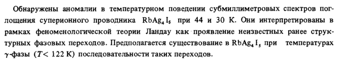 Обнаружены аномалии в температурном поведении субмиллиметровых спектров поглощения суперионного проводника RbAg4I5 при 44 и 30 К. Они интерпретированы в рамках феноменологической теории Ландау как проявление неизвестных ранее структурных фазовых переходов. Предполагается существование в RbAg4Is при температурах γ-фазы (Т< 122 К) последовательности таких переходов.
