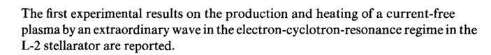 The first experimental results on the production and heating of a current-free plasma by an extraordinary wave in the electron-cyclotron-resonance regime in the L-2 stellarator are reported.