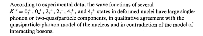 According to experimental data, the wave functions of several К17 = 03+, 04+, 22+, 23+, 4,+, and 42+ states in deformed nuclei have large single-phonon or two-quasiparticle components, in qualitative agreement with the quasiparticle-phonon model of the nucleus and in contradiction of the model of interacting bosons.