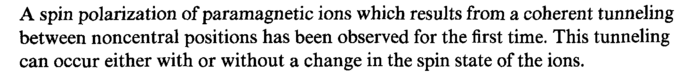 A spin polarization of paramagnetic ions which results from a coherent tunneling between noncentral positions has been observed for the first time. This tunneling can occur either with or without a change in the spin state of the ions.