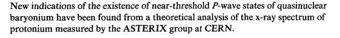 New indications of the existence of near-threshold P-wave states of quasinuclear baryonium have been found from a theoretical analysis of the x-ray spectrum of protonium measured by the ASTERIX group at CERN.