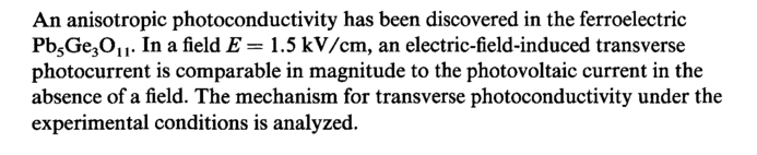 An anisotropic photoconductivity has been discovered in the ferroelectric Pb5Ge3On. In a field Ε = 1.5 kV/cm, an electric-field-induced transverse photocurrent is comparable in magnitude to the photovoltaic current in the absence of a field. The mechanism for transverse photoconductivity under the experimental conditions is analyzed.