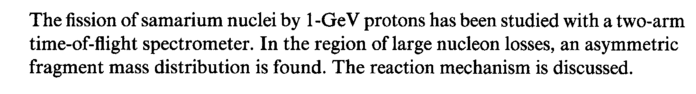 The fission of samarium nuclei by 1-GeV protons has been studied with a two-arm time-of-flight spectrometer. In the region of large nucleon losses, an asymmetric fragment mass distribution is found. The reaction mechanism is discussed.
