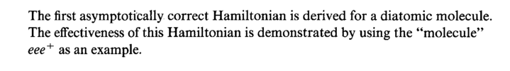 The first asymptotically correct Hamiltonian is derived for a diatomic molecule. The effectiveness of this Hamiltonian is demonstrated by using the "molecule*'
