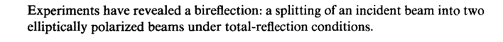Experiments have revealed a bireflection: a splitting of an incident beam into two elliptically polarized beams under total-reflection conditions.
