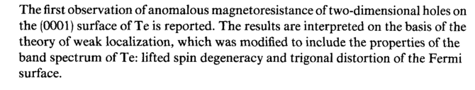 The first observation of anomalous magnetoresistance of two-dimensional holes on the (0001) surface of Те is reported. The results are interpreted on the basis of the theory of weak localization, which was modified to include the properties of the band spectrum of Те: lifted spin degeneracy and trigonal distortion of the Fermi surface.