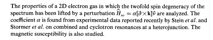 The properties of a 2D electron gas in which the twofold spin degeneracy of the spectrum has been lifted by a perturbation Hso = a[5xk]v are analyzed. The coefficient a is found from experimental data reported recently by Stein et al. and Stormer et al. on combined and cyclotron resonances at a heterojunction. The magnetic susceptibility is also studied.
