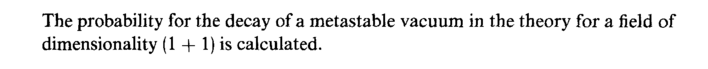 The probability for the decay of a metastable vacuum in the theory for a field of dimensionality (1 + 1) is calculated.