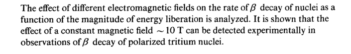 The effect of different electromagnetic fields on the rate of β decay of nuclei as a function of the magnitude of energy liberation is analyzed. It is shown that the effect of a constant magnetic field — 10 Τ can be detected experimentally in observations of β decay of polarized tritium nuclei.