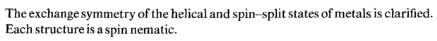 The exchange symmetry of the helical and spin-split states of metals is clarified. Each structure is a spin nematic.