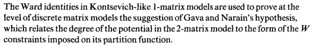 The Ward identities in Kontsevich-like 1-matrix models are used to prove at the level of discrete matrix models the suggestion of Gava and Narain's hypothesis, which relates the degree of the potential in the 2-matrix model to the form of the W constraints imposed on its partition function.