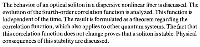 The behavior of an optical soliton in a dispersive nonlinear fiber is discussed. The evolution of the fourth-order correlation function is analyzed. This function is independent of the time. The result is formulated as a theorem regarding the correlation function, which also applies to other quantum systems. The fact that this correlation function does not change proves that a soliton is stable. Physical consequences of this stability are discussed.