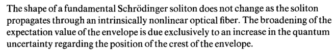 The shape of a fundamental Schrodinger soliton does not change as the soliton propagates through an intrinsically nonlinear optical fiber. The broadening of the expectation value of the envelope is due exclusively to an increase in the quantum uncertainty regarding the position of the crest of the envelope.