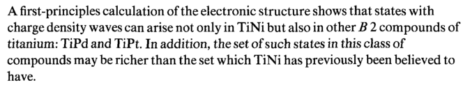 A first-principles calculation of the electronic structure shows that states with charge density waves can arise not only in TiNi but also in other В 2 compounds of titanium: TiPd and TiPt. In addition, the set of such states in this class of compounds may be richer than the set which TiNi has previously been believed to have.