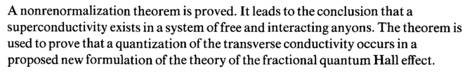 A nonrenormalization theorem is proved. It leads to the conclusion that a superconductivity exists in a system of free and interacting anyons. The theorem is used to prove that a quantization of the transverse conductivity occurs in a proposed new formulation of the theory of the fractional quantum Hall effect.