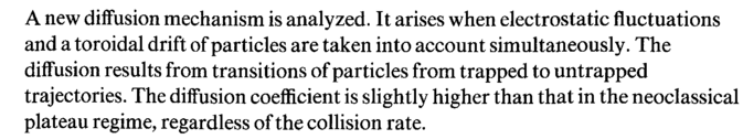 A new diffusion mechanism is analyzed. It arises when electrostatic fluctuations and a toroidal drift of particles are taken into account simultaneously. The diffusion results from transitions of particles from trapped to untrapped trajectories. The diffusion coefficient is slightly higher than that in the neoclassical plateau regime, regardless of the collision rate.