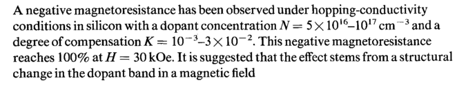 A negative magnetoresistance has been observed under hopping-conductivity conditions in silicon with a dopant concentration N = 5Xl016-1017cm~3 and a degree of compensation^ = 10~^-3 Χ 10-2. This negative magnetoresistance reaches 100% at Η = 30 kOe. It is suggested that the effect stems from a structural change in the dopant band in a magnetic field