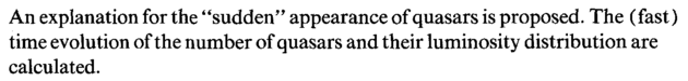 An explanation for the "sudden" appearance of quasars is proposed. The (fast) time evolution of the number of quasars and their luminosity distribution are calculated.