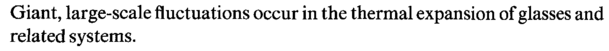Giant, large-scale fluctuations occur in the thermal expansion of glasses and related systems.
