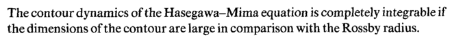 The contour dynamics of the Hasegawa-Mima equation is completely integrable if the dimensions of the contour are large in comparison with the Rossby radius.