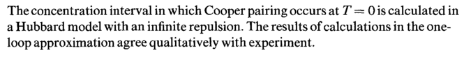 The concentration interval in which Cooper pairing occurs at Τ — 0 is calculated in a Hubbard model with an infinite repulsion. The results of calculations in the one-loop approximation agree qualitatively with experiment.