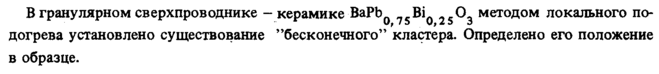 В гранулярном сверхпроводнике керамике BaPb Bi -.О методом локального по-догрева установлено существование "бесконечного" кластера. Определено его положение в образце.