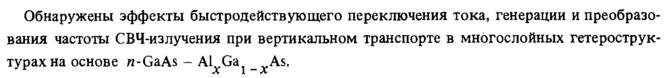 Обнаружены эффекты быстродействующего переключения тока, генерации и преобразования частоты СВЧ-излучения при вертикальном транспорте в многослойных гетерострук-турахна основе и-GaAs Al Ga _YAs.