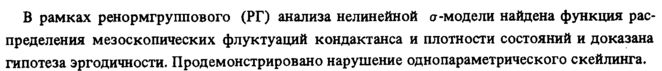 В рамках ренормгруппового (РГ) анализа нелинейной а -модели найдена функция распределения мезоскопических флуктуаций кондактанса и плотности состояний и доказана гипотеза эргодичности. Продемонстрировано нарушение однопараметрического скейлинга.