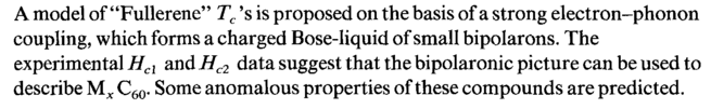 A model of "Fullerene" Tc's is proposed on the basis of a strong electron-phonon coupling, which forms a charged Bose-liquid of small bipolarons. The experimental Hcl and Hc2 data suggest that the bipolaronic picture can be used to describe Mx C60. Some anomalous properties of these compounds are predicted.