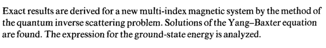 Exact results are derived for a new multi-index magnetic system by the method of the quantum inverse scattering problem. Solutions of the Yang-Baxter equation are found. The expression for the ground-state energy is analyzed.
