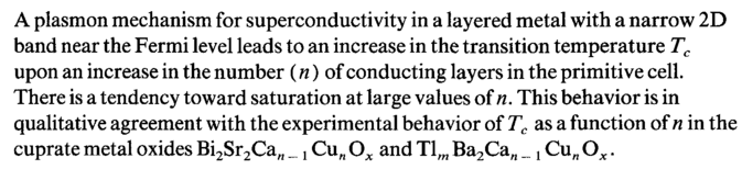A plasmon mechanism for superconductivity in a layered metal with a narrow 2D band near the Fermi level leads to an increase in the transition temperature Tc upon an increase in the number (η) of conducting layers in the primitive cell. There is a tendency toward saturation at large values of n. This behavior is in qualitative agreement with the experimental behavior of Tc as a function of η in the cuprate metal oxides Bi2Sr2Ca„ _ ^ Cu„ Ox and Tlm Ba2Ca„ „ t Cu„ Ox.
