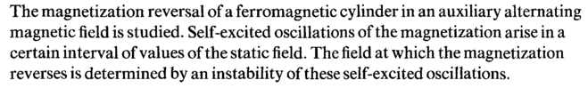 The magnetization reversal of a ferromagnetic cylinder in an auxiliary alternating magnetic field is studied. Self-excited oscillations of the magnetization arise in a certain interval of values of the static field. The field at which the magnetization reverses is determined by an instability of these self-excited oscillations.