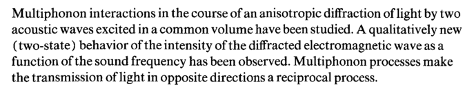 Multiphonon interactions in the course of an anisotropic diffraction of light by two acoustic waves excited in a common volume have been studied. A qualitatively new (two-state) behavior of the intensity of the diffracted electromagnetic wave as a function of the sound frequency has been observed. Multiphonon processes make the transmission of light in opposite directions a reciprocal process.