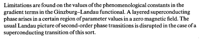 Limitations are found on the values of the phenomenological constants in the gradient terms in the Ginzburg-Landau functional. A layered superconducting phase arises in a certain region of parameter values in a zero magnetic field. The usual Landau picture of second-order phase transitions is disrupted in the case of a superconducting transition of this sort.