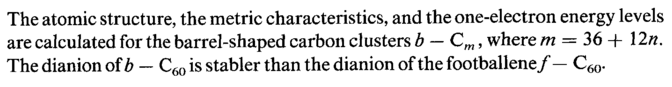 The atomic structure, the metric characteristics, and the one-electron energy levels are calculated for the barrel-shaped carbon clusters b — Cm, where m = 36 + \2n. The dianion of b — C60 is stabler than the dianion of the footballene/— C60.