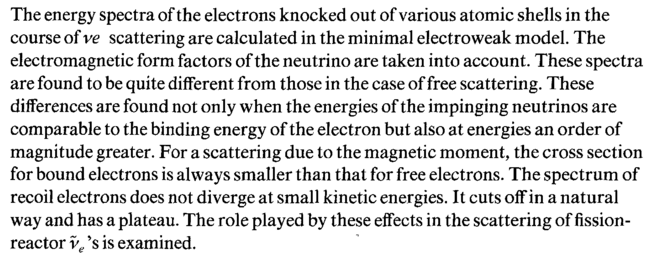 The energy spectra of the electrons knocked out of various atomic shells in the course of ve scattering are calculated in the minimal electroweak model. The electromagnetic form factors of the neutrino are taken into account. These spectra are found to be quite different from those in the case of free scattering. These differences are found not only when the energies of the impinging neutrinos are comparable to the binding energy of the electron but also at energies an order of magnitude greater. For a scattering due to the magnetic moment, the cross section for bound electrons is always smaller than that for free electrons. The spectrum of recoil electrons does not diverge at small kinetic energies. It cuts off in a natural way and has a plateau. The role played by these effects in the scattering of fission-reactor ve's is examined.