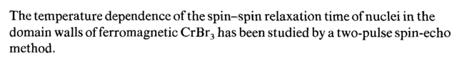 The temperature dependence of the spin-spin relaxation time of nuclei in the domain walls of ferromagnetic CrBr3 has been studied by a two-pulse spin-echo method.