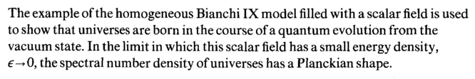 The example of the homogeneous Bianchi IX model filled with a scalar field is used to show that universes are born in the course of a quantum evolution from the vacuum state. In the limit in which this scalar field has a small energy density, e-> 0, the spectral number density of universes has a Planckian shape.
