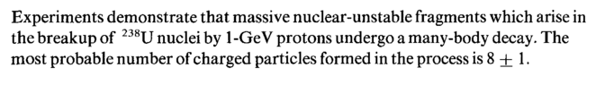 Experiments demonstrate that massive nuclear-unstable fragments which arise in the breakup of 238U nuclei by 1 -GeV protons undergo a many-body decay. The most probable number of charged particles formed in the process is 8 + 1.