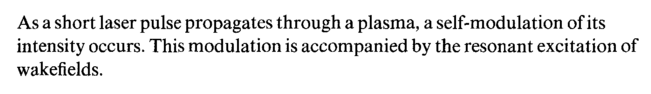 As a short laser pulse propagates through a plasma, a self-modulation of its intensity occurs. This modulation is accompanied by the resonant excitation of wakefields.