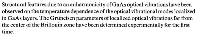 Structural features due to an anharmonicity of GaAs optical vibrations have been observed on the temperature dependence of the optical vibrational modes localized in GaAs layers. The Gruneisen parameters of localized optical vibrations far from the center of the Brillouin zone have been determined experimentally for the first time.