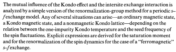 The mutual influence of the Kondo effect and the intersite exchange interaction is analyzed by a simple version of the renormalization-group method for a periodic s-/exchange model. Any of several situations can arise—an ordinary magnetic state, a Kondo magnetic state, and a nonmagnetic Kondo lattice—depending on the relation between the one-impurity Kondo temperature and the seed frequency of the spin fluctuations. Explicit expressions are derived for the saturation moment and for the renormalization of the spin dynamics for the case of a "ferromagnetic" ^-/exchange.