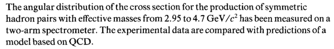 The angular distribution of the cross section for the production of symmetric hadron pairs with effective masses from 2.95 to 4.7 GeV/c2 has been measured on a two-arm spectrometer. The experimental data are compared with predictions of a model based on QCD.