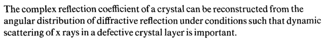 The complex reflection coefficient of a crystal can be reconstructed from the angular distribution of diffractive reflection under conditions such that dynamic scattering of χ rays in a defective crystal layer is important.